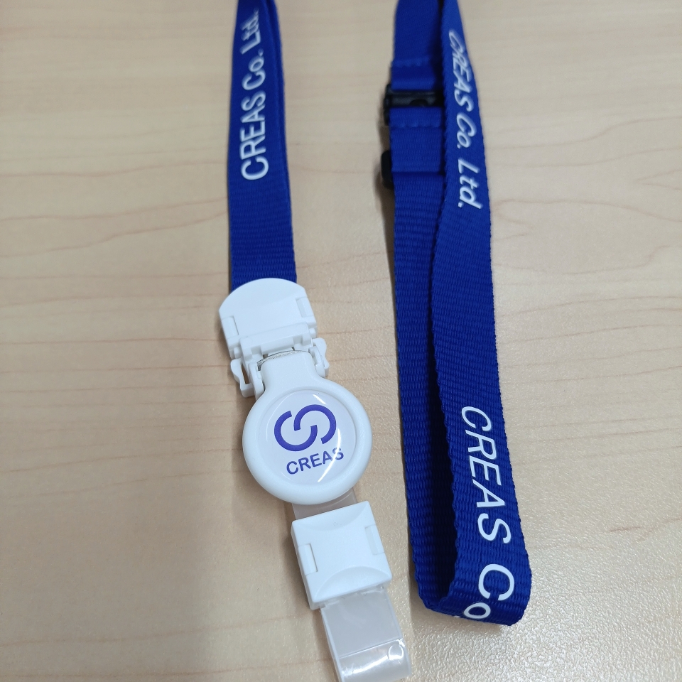 先日、弊社のオリジナルストラップを注文したものが到着し、事業所にいる社員へ配布致しました。