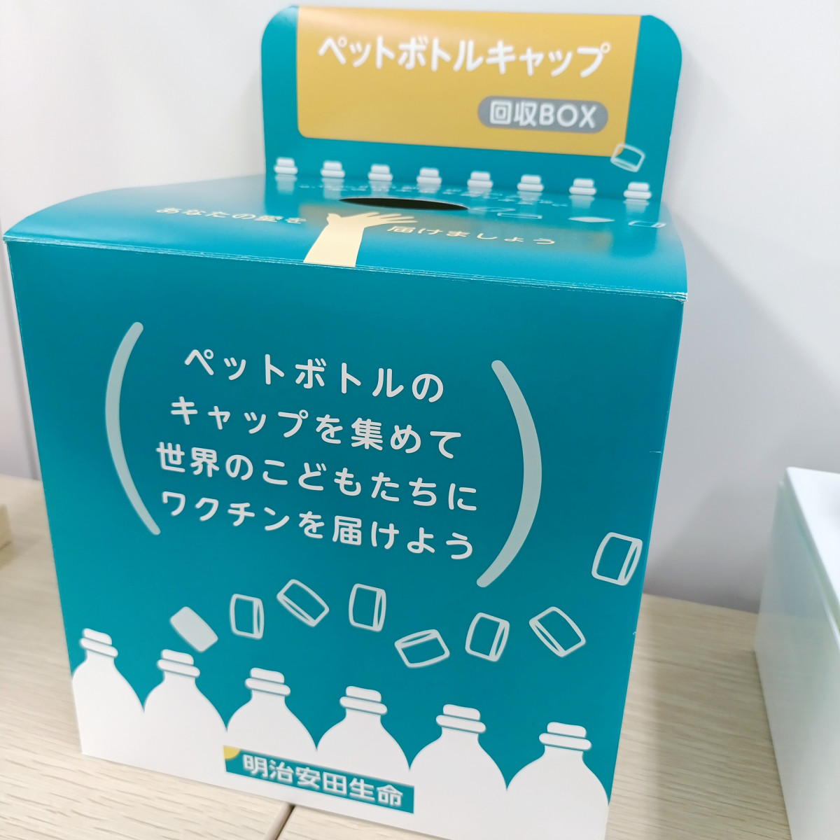 明治安田生命様のご協力をいただき、ペットボトルキャップを回収して世界の子供たちにワクチンを届けようという活動をしております。