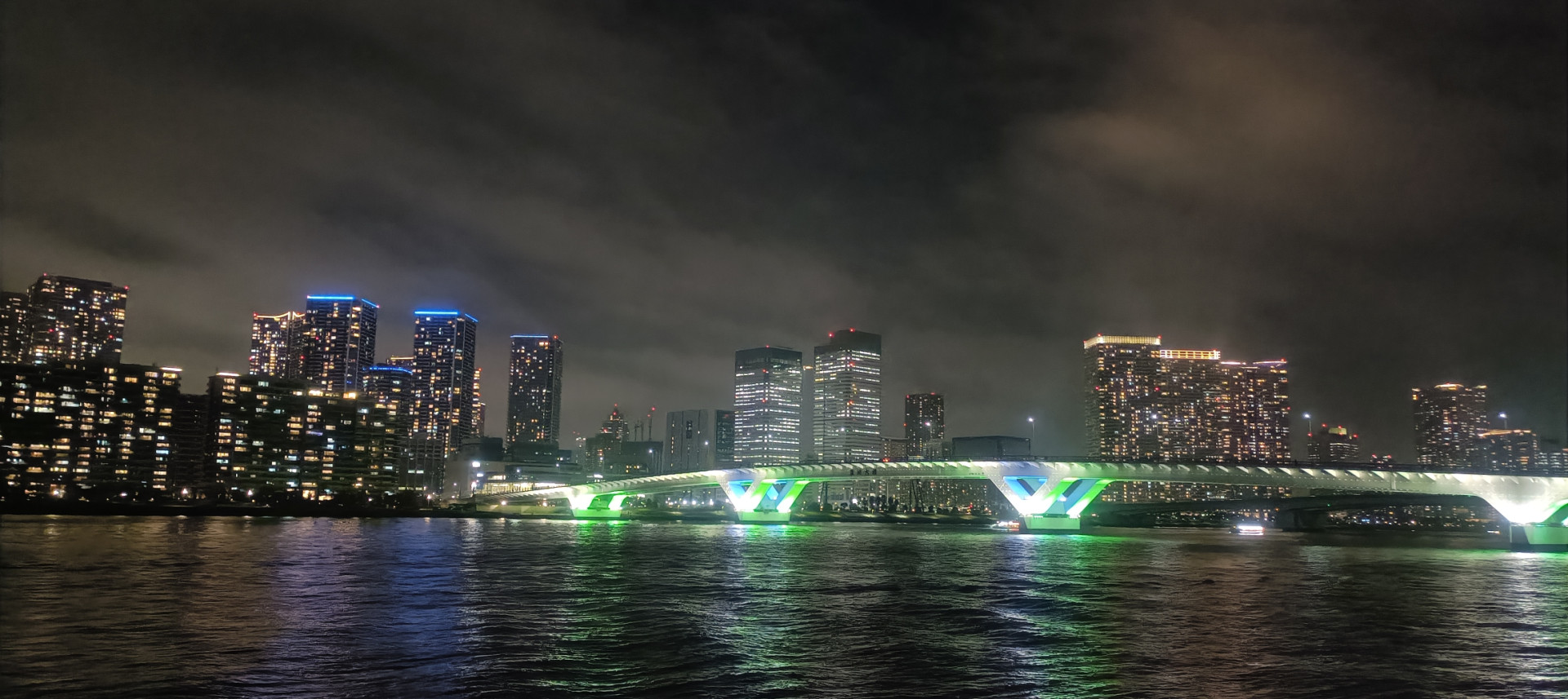 最後は運河沿いを散歩しながら駅へ向かいました。タワーマンションがいい感じのイルミネーションです。